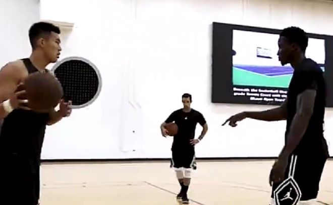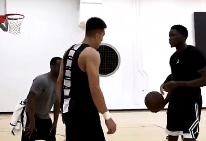 郭艾倫和奧拉迪波一起訓(xùn)練,年長一歲的奧拉迪波,還親自教了郭艾倫幾個(gè)上籃的動作,比如說背對防守人接球后如何通過背轉(zhuǎn)身迅速擺脫對方上籃等等。