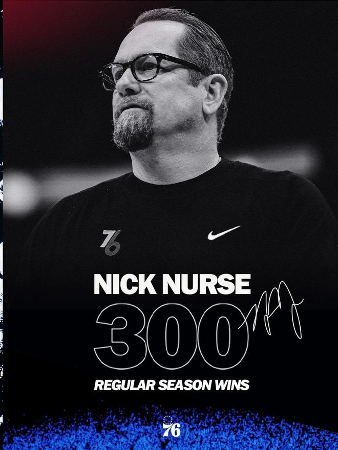 北京時(shí)間10月26日,NBA常規(guī)賽76人125-121戰(zhàn)勝黃蜂。本場(chǎng)比賽結(jié)束后,76人主帥納斯也迎來(lái)了自己執(zhí)教生涯的第300場(chǎng)勝利。
