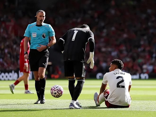 在該場(chǎng)比賽中,薩利巴僅上場(chǎng)五分鐘后便因傷被替換下場(chǎng),最終阿森納0比1客場(chǎng)不敵利物浦。阿森納主教練阿爾特塔在賽后表示,薩利巴在賽前熱身時(shí)不慎扭傷腳踝,但仍嘗試堅(jiān)持比賽。