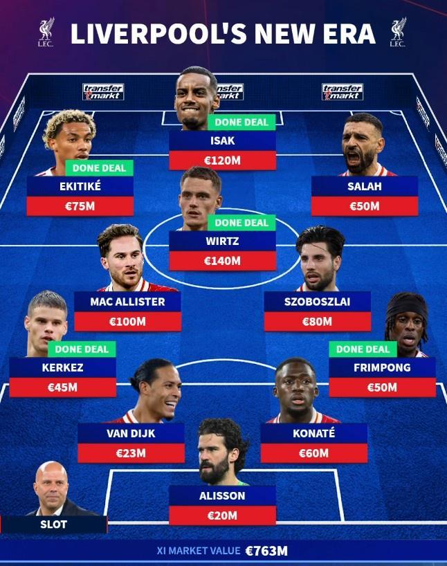 換了半套首發(fā)!德轉(zhuǎn)列利物浦夏窗主力陣5處更替,總身價(jià)上漲1.2億