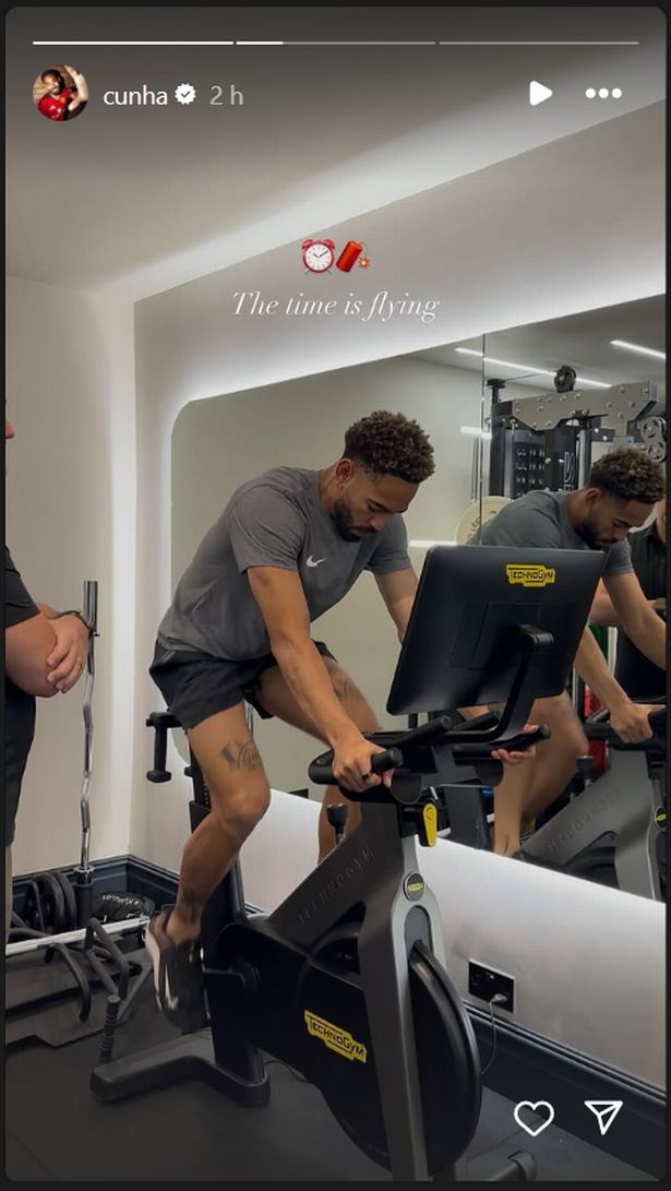 他分享了一張自己在健身房騎健身車的照片,并寫道:“時間飛逝”,還附帶了一個時鐘表情符號和一個鞭炮表情符號。