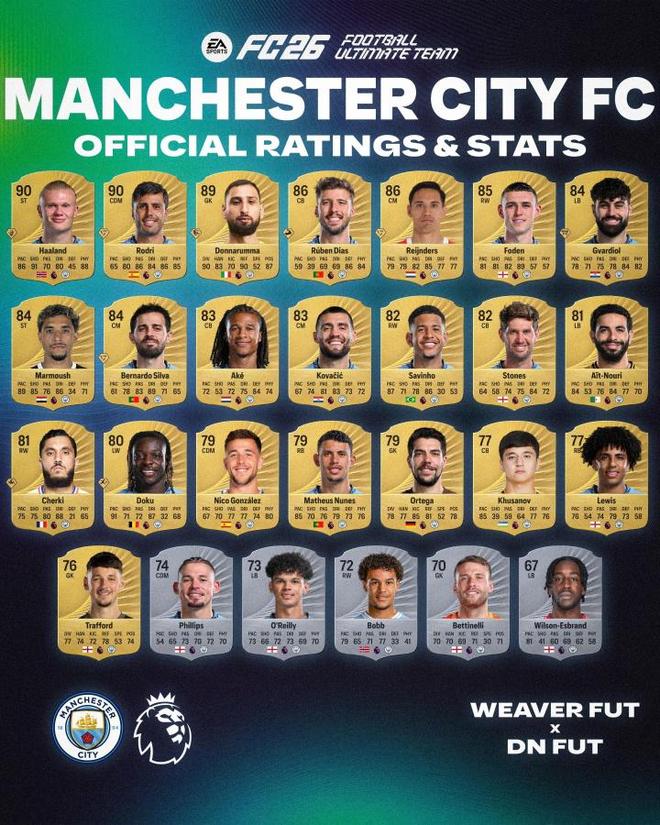 FC26英超球員評(píng)分曝光:薩拉赫領(lǐng)銜!哈蘭德、羅德里、范迪克90分