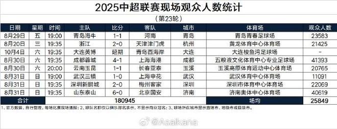 附上一輪中超各場(chǎng)上座人數(shù)↓