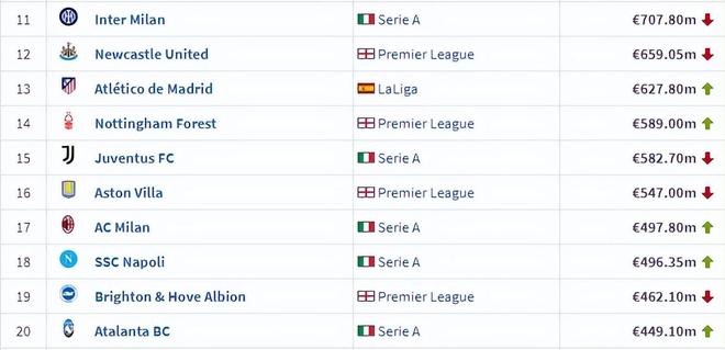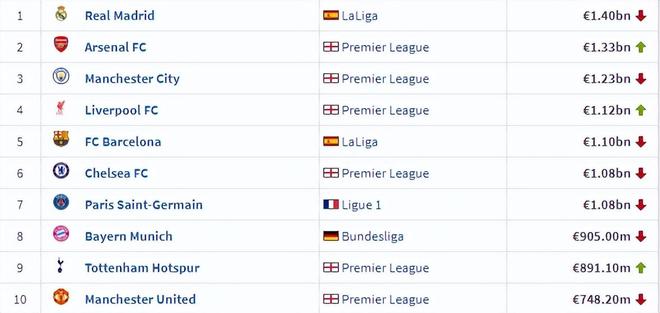根據(jù)德轉(zhuǎn)的最新統(tǒng)計(jì),世界俱樂部身價(jià)排行榜也發(fā)生了一些轉(zhuǎn)換其中,與8月26日轉(zhuǎn)會窗結(jié)束前一個(gè)禮拜統(tǒng)計(jì)相比,皇馬、阿森納、曼城排名無變化仍占據(jù)前3,這倒是跟人們認(rèn)知是相契合的。只不過的,利物浦憑借關(guān)窗日簽下伊薩克,上升3名來到第4,他們的確太狂野在這個(gè)轉(zhuǎn)會窗刷紀(jì)錄,就像是表演的。