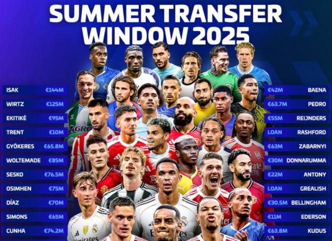 轉(zhuǎn)會窗后世界足壇框架重塑:皇納城身價(jià)top3,諸多英超豪門升級