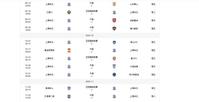 上海申花后七輪對手:山東泰山(主)、成都蓉城(主)、梅州客家(主)、青島西海岸(客)、大連英博(主)、深圳新鵬城(主)、天津津門虎(客)