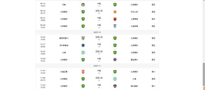 北京國安后七輪對手:河南隊(客)、上海海港(主)、大連英博(主)、深圳新鵬城(客)、青島海牛(主)、長春亞泰(客)、梅州客家(主)