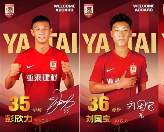 劉國寶、彭欣力夏窗租借至長春亞泰,截止中超第23輪,兩人還未完成加盟新東家后的首秀。