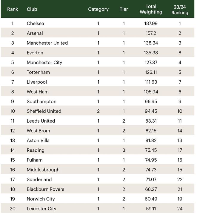 這項(xiàng)排名是英國目前唯一公開的同類資源,主要評估英格蘭各家青訓(xùn)營的產(chǎn)出能力。排名依據(jù)的是在2024/25賽季,有多少青訓(xùn)畢業(yè)生在英格蘭前五級聯(lián)賽(英超、英格蘭足球聯(lián)賽和全國聯(lián)賽),以及歐洲五大聯(lián)賽中至少有過一次出場記錄。