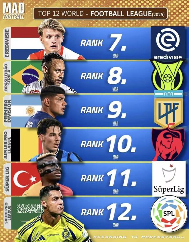 2025世界聯(lián)賽榜單引熱議:沙特聯(lián)賽躋身前12全靠C羅等球星硬撐
