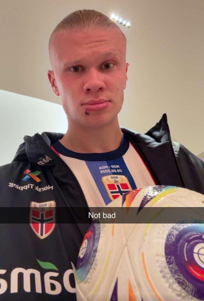 賽后,哈蘭德在社交媒體曬出他手拿著比賽用球的照片,并配文:“還不錯(cuò)。”