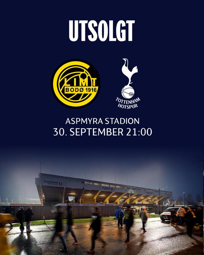 雷速體育9月10日訊 根據(jù)挪超博德閃耀俱樂部官方的消息,博德閃耀主場對陣熱刺的歐冠比賽球票已經售罄。