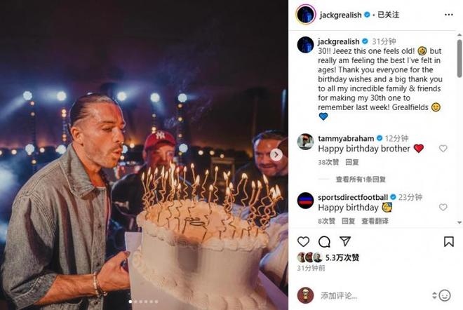 直播吧9月10日訊 格拉利什今天在Instagram曬圖,慶祝生日。