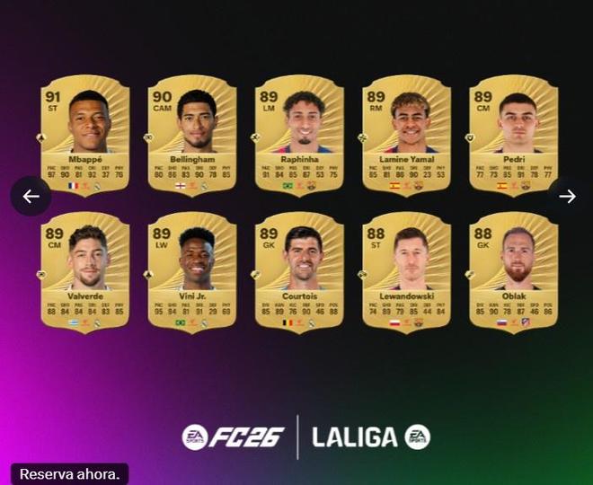 FC26官方西甲球員評分榜:姆巴佩91最高,貝林厄姆90,亞馬爾89