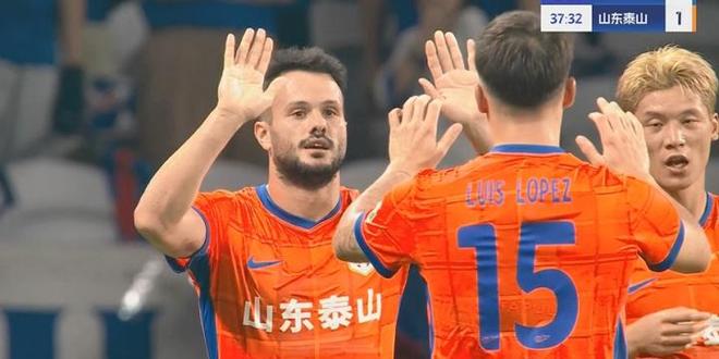 第37分鐘,卡扎伊什維利前場(chǎng)搶斷,隨后單刀破門,泰山1-1扳平申花。