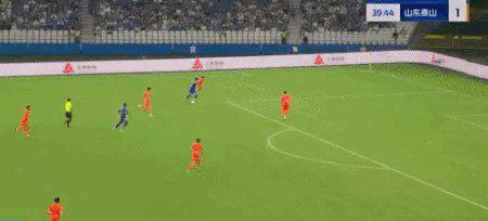 比賽第42分鐘,王大雷撲倒劉誠宇送點,吳曦主罰命中。上海申花2比1再度領先山東泰山。