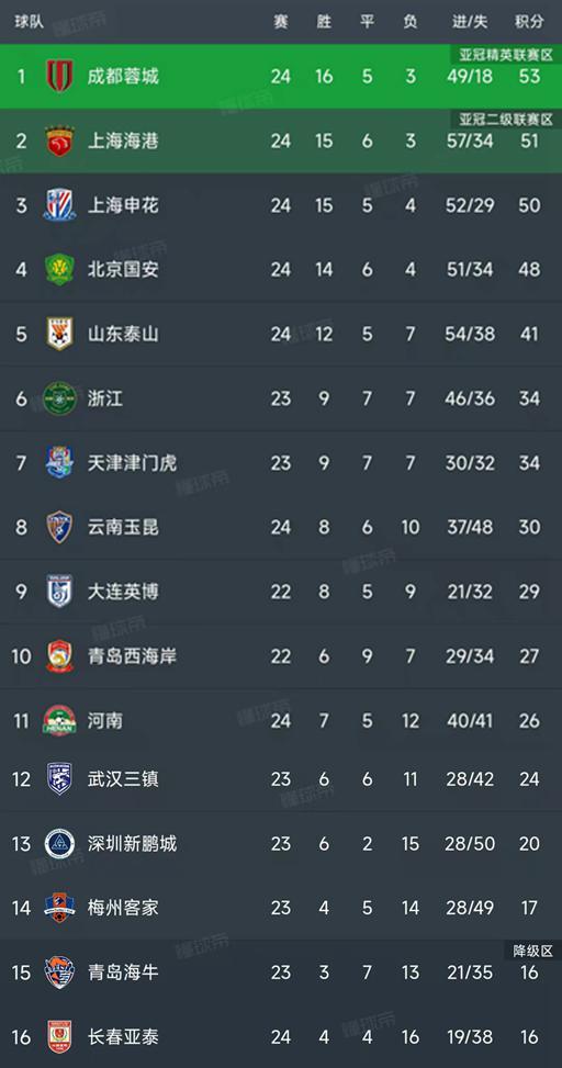 中超第24輪結(jié)束了3場(chǎng)比賽,最新積分榜如下!