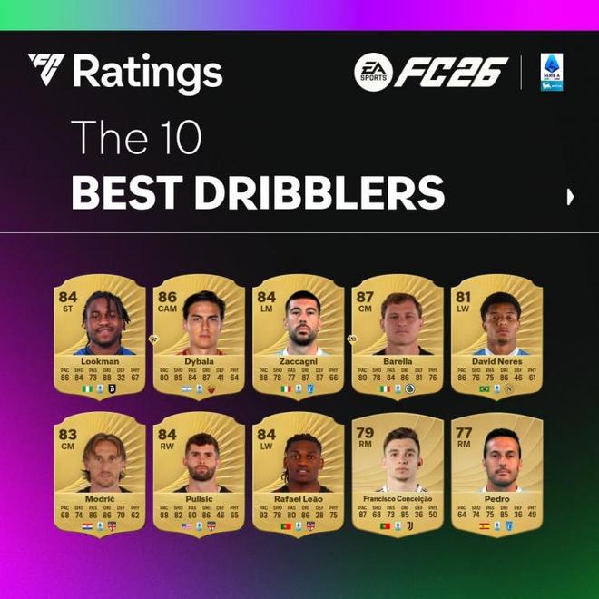 意甲FC26盤帶前10球員:盧克曼88居首,迪巴拉第二,米蘭3人在列
