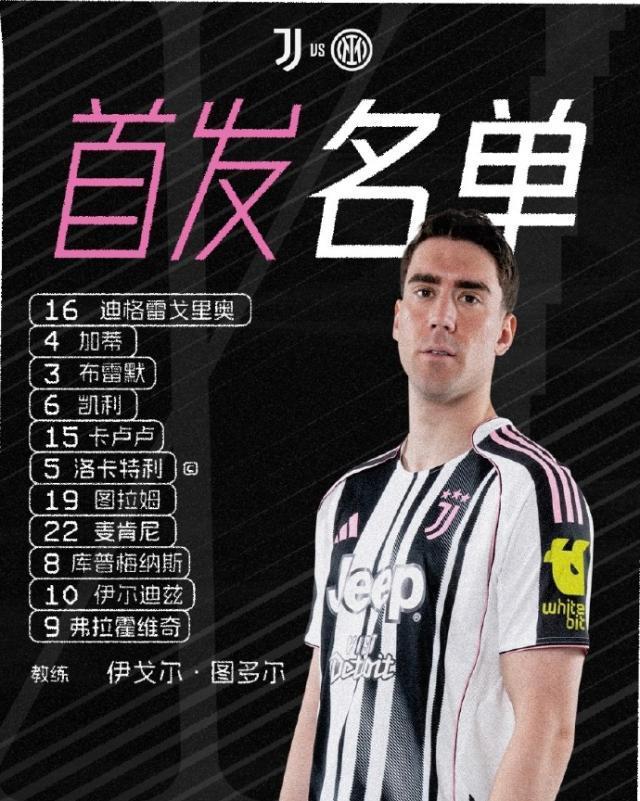 尤文圖斯陣容(3421):迪格雷戈里奧/加蒂(79’喬納森·戴維)、布雷默、凱利/卡盧盧、洛卡特利(73’卡瓦爾)、赫夫朗·圖拉姆、麥肯尼(79’若昂·馬里奧)/科普邁納斯(74’阿季奇)、耶爾德茲/弗拉霍維奇(74’奧彭達)