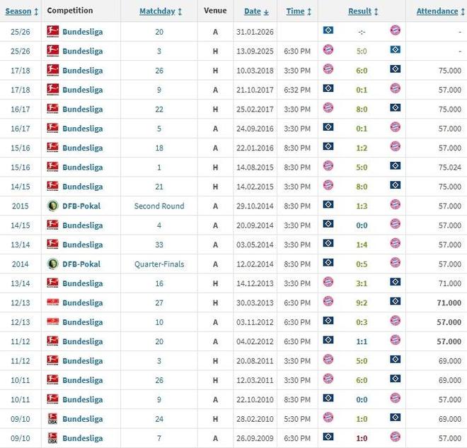 根據(jù)賽后統(tǒng)計,漢堡此役只有2次射正,而拜仁則是9次射正,射門數(shù)更是高達22次,數(shù)據(jù)對比如此懸殊,0-5的比分也就不意外了。值得注意的是,漢堡對陣拜仁已經(jīng)9連敗了。并且20場不勝,其中還包含多場慘敗,兩次0-8、1次2-9、4次0-5、2次0-6,總比分7-76。