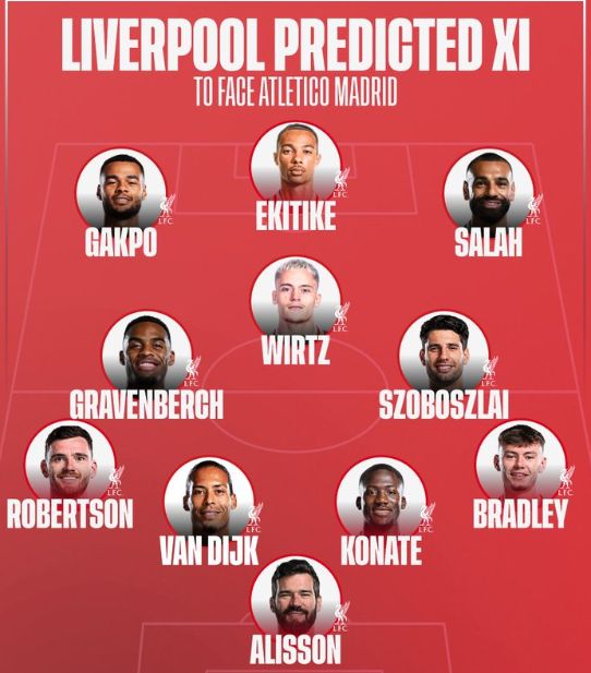 英媒預(yù)測(cè)利物浦歐冠首發(fā):維爾茨領(lǐng)銜中場(chǎng),伊薩克繼續(xù)缺陣