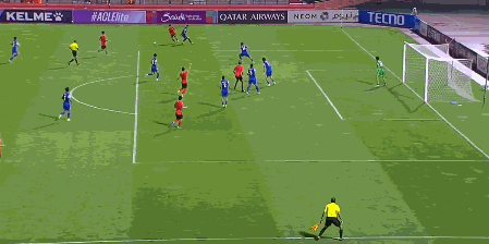 第65分鐘,江原FC再一次從右路發(fā)動進(jìn)攻取得進(jìn)球,邊路完成二過一擊穿申花防線后,江原FC中路接倒三角傳球后的射門被封堵,隨后在小禁區(qū)內(nèi)的具本哲搶射破門,幫助球隊(duì)以2-1反超比分。