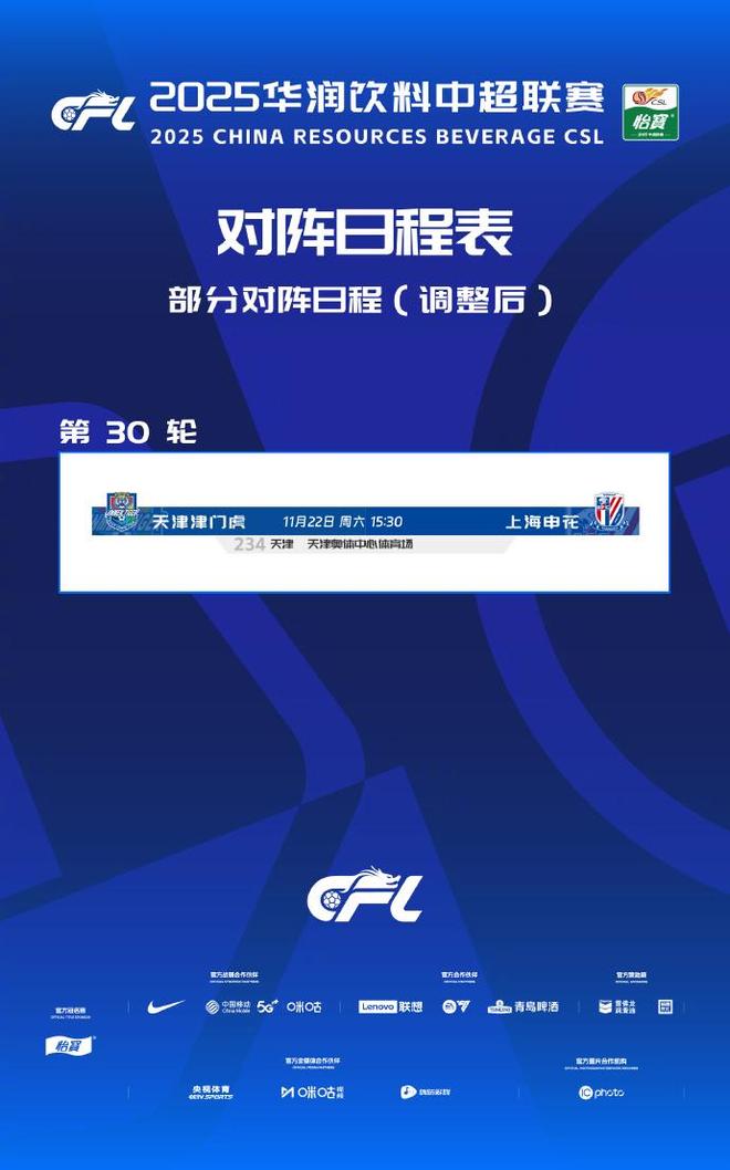 雷速體育9月17日訊 中超聯(lián)賽官方消息,天津津門虎對陣上海申花的比賽將于11月22日15:30在天津泰達(dá)足球場進(jìn)行,為最大限度滿足球迷的觀賽需求,同時(shí)保證本場比賽安全有序進(jìn)行,決定調(diào)整比賽場地。