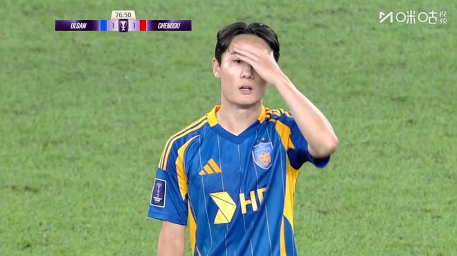 直到第76分鐘,蔚山HD中場一腳長傳直接打穿成都蓉城整條防線,嚴(yán)元相單刀球兩連擊最終將皮球送入球門,成都蓉城被對手將比分扳為1-1。