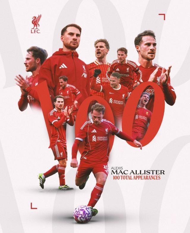 替補(bǔ)登場,麥卡利斯特迎利物浦生涯百場里程碑之戰(zhàn)