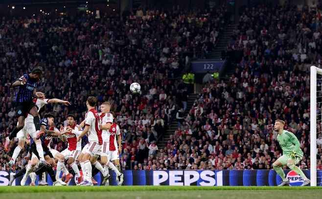 第41分鐘阿賈克斯后場長傳策動,給了米卡古茨單刀的機會,關(guān)鍵時刻索默神撲拯救球隊,逃過一劫的國際米蘭,在第42分鐘打破了場上的平衡,恰爾汗奧盧開出右側(cè)角球,小圖拉姆前點甩頭攻門,幫助藍(lán)黑軍團(tuán)帶著1-0的領(lǐng)先,回到了中場更衣室。