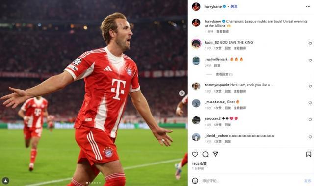 凱恩社媒曬照慶祝勝利:歐冠之夜歸來!在安聯(lián)球場(chǎng)的非凡一晚
