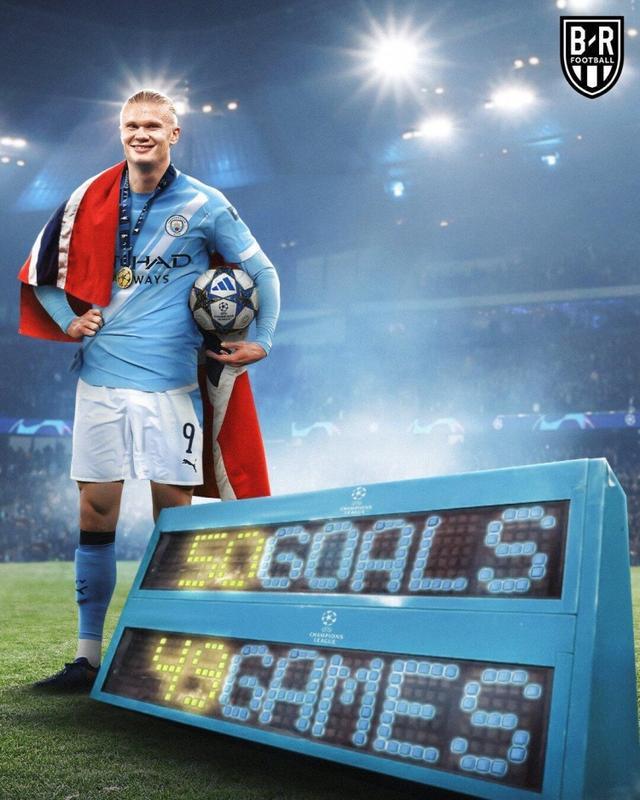 哈蘭德也是歐冠歷史攻入50球最快的球員,用了49場比賽。排在哈蘭德身后的是62場50球的范尼斯特魯伊以及66場50球的梅西。