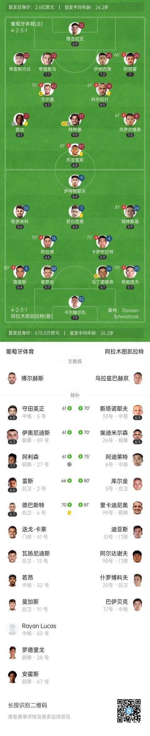下半場補時3分鐘,葡萄牙體育4-1阿拉木圖凱拉特。