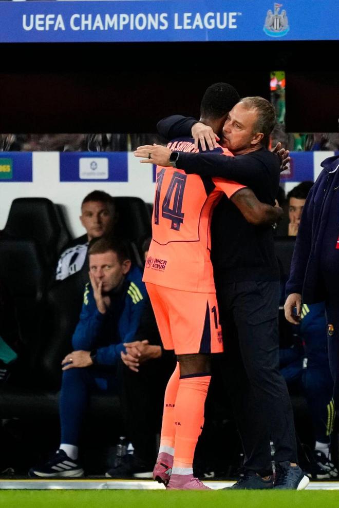 對(duì)他來說,這是意義非凡的一刻。但這還不夠——更精彩的一幕還在后頭。紐卡后衛(wèi)丹·伯恩傳球失誤,拉什福德扛住托納利,為自己創(chuàng)造出射門空間,隨后轟出一記驚天世界波。多么精彩的一擊!這次,他跑向巴薩主帥漢斯·弗里克慶祝,兩人緊緊相擁。他配得上這份擁抱。