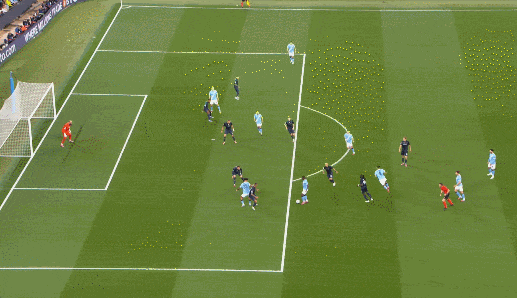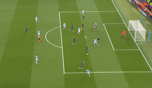55’福登挑傳哈蘭德,后者頭球吊門得手,曼城主場破僵;