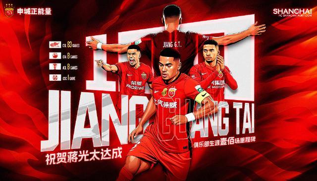 蔣光太迎來自己在上海海港隊的第100場比賽。