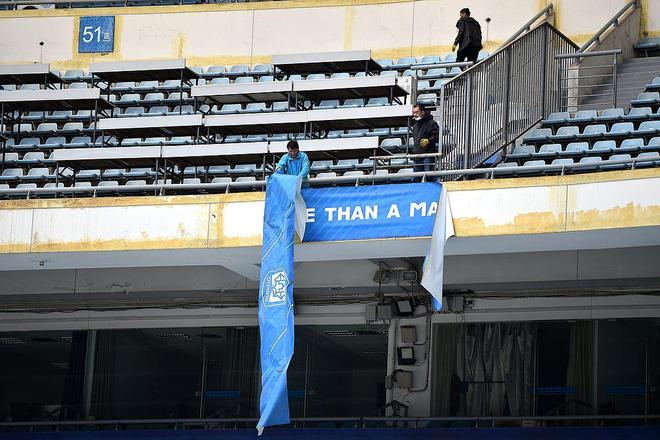 2021年4月,南京奧體中心逐步去除蘇寧的橫幅。視覺中國(guó) 圖