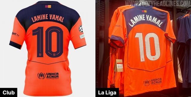 變丑了巴薩第三球衣只能印白色字體,看起來(lái)效果差多了