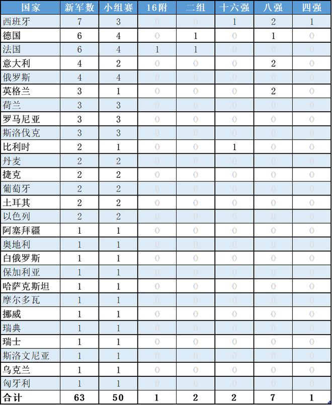 自1997-98賽季至上賽季,歐冠一共出現(xiàn)了63支新軍。這其中,50支球隊(duì)倒在了小組賽(聯(lián)賽)階段,1支參加了16強(qiáng)附加賽,本質(zhì)上沒(méi)有跨入下一階段淘汰賽;2支進(jìn)入16強(qiáng),2支進(jìn)入第二階段小組賽,等同于16強(qiáng);7支進(jìn)入八強(qiáng),1支四強(qiáng)。