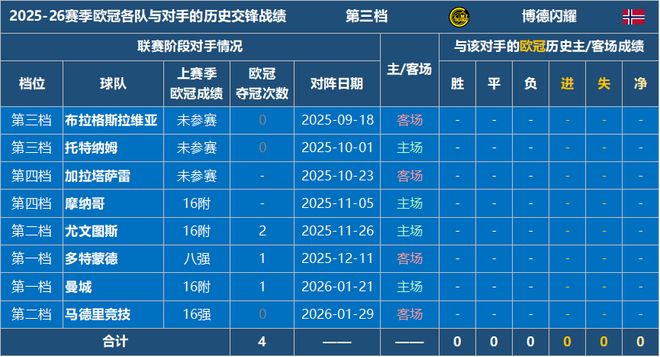 博德閃耀(挪威):199-00賽季,莫爾德,以1勝5負(fù)小組賽墊底;