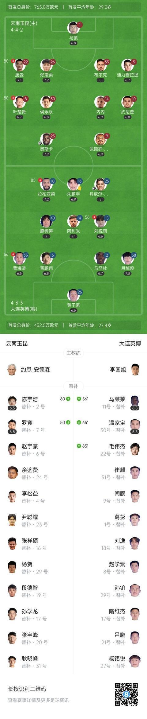 直播吧9月19日訊 北京時間9月19日晚上20:00,中超第25輪,云南玉昆坐鎮(zhèn)玉溪高原體育運動中心體育場迎戰(zhàn)大連英博。上半場,馬鎮(zhèn)失誤送禮,佩尼亞笑納。下半場,奧斯卡扳平,馬鎮(zhèn)撲單刀。全場比賽結(jié)束,云南玉昆1-1大連英博。本場過后,云南玉昆8勝7平10負(fù)積31分,排名中超積分榜第9;大連英博9勝6平9負(fù)積33分,排名中超積分榜第8。