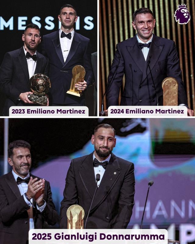維拉門將馬丁內(nèi)斯在2023年和2024年蟬聯(lián)雅辛獎,今夏加盟曼城的多納魯馬則獲得了2025年雅辛獎。