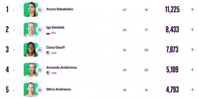 WTA排名更新:鄭欽文跌2位至世界第9 薩巴倫卡遙遙領(lǐng)先王欣瑜第33