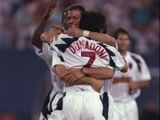失意的歐洲杯之旅過后,多納多尼淡出國家隊,在美國大聯(lián)盟踢了一段時間。等到1997年的時候,多納多尼出人意料地重返米蘭,為紅黑軍團貢獻了自己最后的力量。