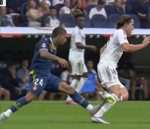 在皇馬vs西班牙人的比賽中,西班牙人全場20次犯規(guī)但沒有一張黃牌,而皇馬全場犯規(guī)10次,吃到了2張黃牌。比賽中西班牙人球員多蘭從身后蹬踏卡雷拉斯小腿沒有吃牌,引起了皇馬替補(bǔ)席的強(qiáng)烈抗議。