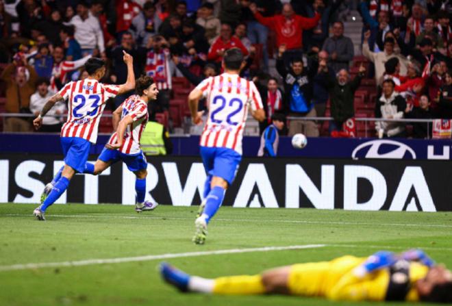 本場(chǎng)比賽,西蒙尼派出了最強(qiáng)的陣容。第15分鐘,馬競(jìng)右路傳中,阿爾瓦雷斯在禁區(qū)里搶點(diǎn),凌空墊射破門(mén),1-0。阿爾瓦雷斯的這個(gè)進(jìn)球難度極大,場(chǎng)邊的西蒙尼也是無(wú)比驚嘆。