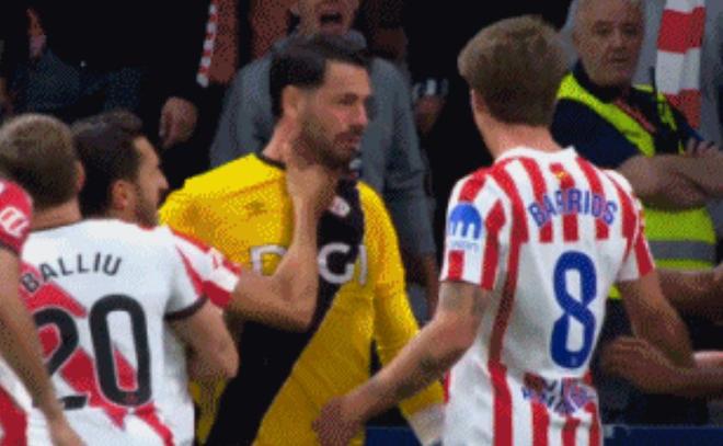 第49分鐘,略倫特禁區(qū)里倒地,對(duì)方門(mén)將上前質(zhì)疑他假摔。雙方球員發(fā)生言語(yǔ)上的沖突。在此過(guò)程中,科克用手掐住對(duì)方門(mén)將的脖子,后者隨即倒在地上。裁判向科克出示黃牌,馬競(jìng)逃過(guò)一劫。
