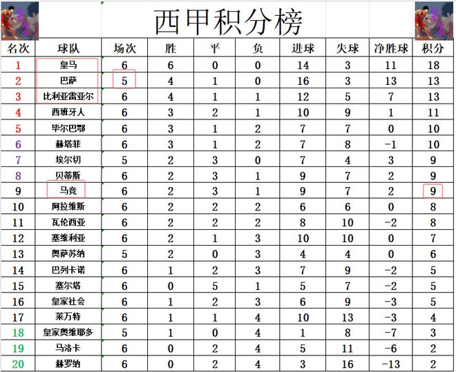 西甲最新積分戰(zhàn)報壓哨絕殺5輪不敗馬競差皇馬9分暫升第9