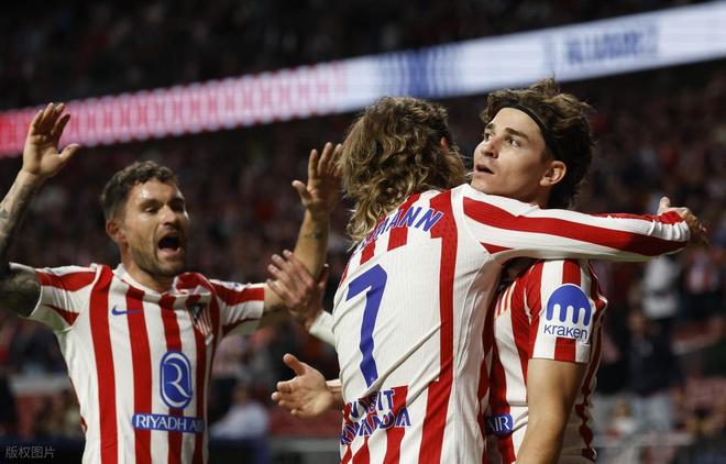僅僅3分鐘后,馬競快速回應(yīng),拉斯帕多里左路下底傳中,替補登場的西蒙尼后點頭槌攻門,巴塔拉奮力將球擋下,阿爾瓦雷斯機敏補射得手,馬競2:2閃電扳平比分。第87分鐘,馬競中路快速推進,連續(xù)的傳遞,西蒙尼45度角處策應(yīng)橫傳中路,阿爾瓦雷斯接球連續(xù)橫切調(diào)整,禁區(qū)弧頂前左腳大力兜射,皮球直入球門左側(cè)死角,阿爾瓦雷斯上演帽子戲法,馬競3:2逆轉(zhuǎn)絕殺巴列卡諾。