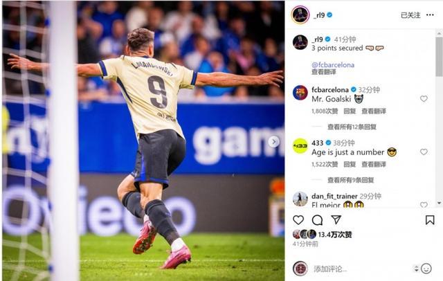 萊萬(wàn)社媒曬出自己慶祝進(jìn)球的照片,配文:三分到手